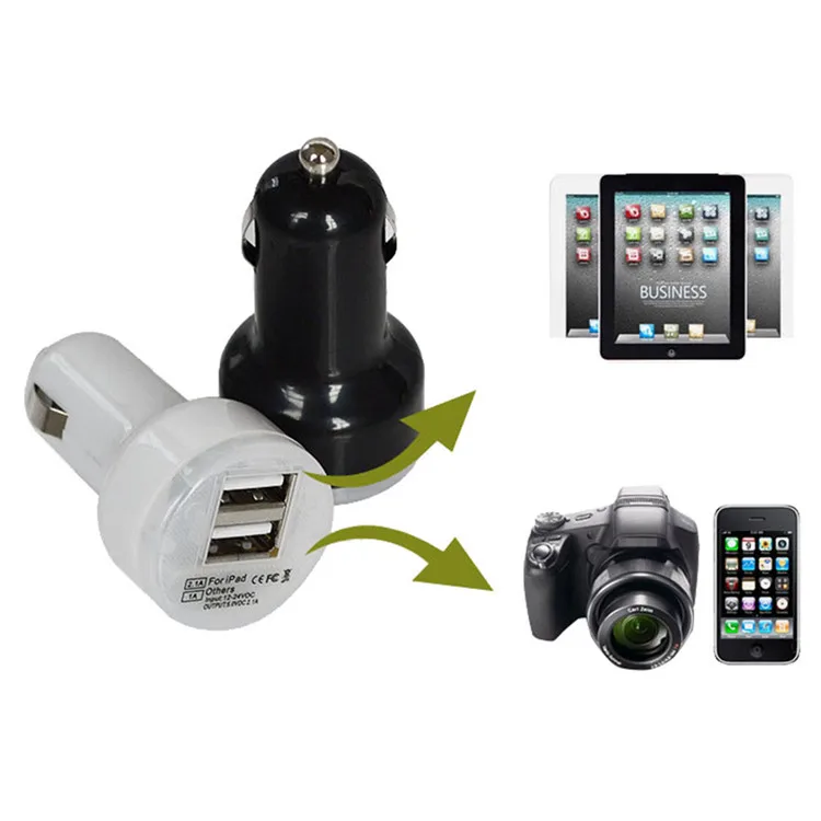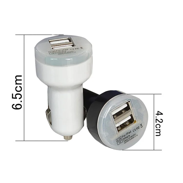 Universal 2 ports USB car charger adapter, charge 2 USB devices in your car at the same time.