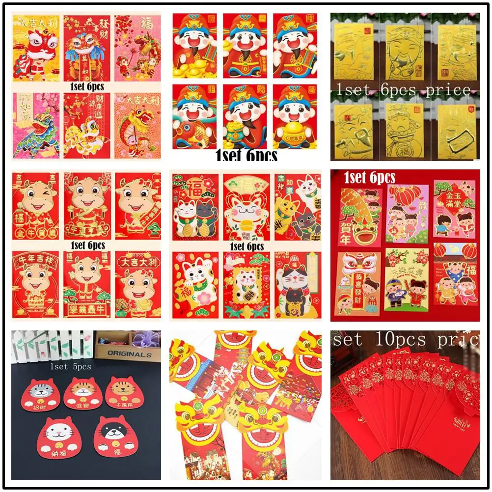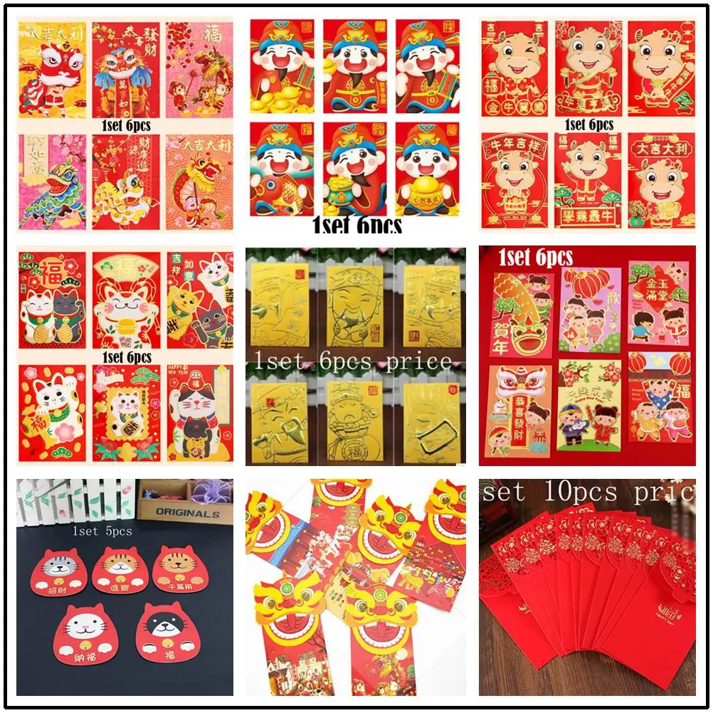 40 набор счастливый конверт для денег китайский новый год Зодиак Мультфильм красный карман Весенний фестиваль красный конверт креативный детский подарок сумка для денег