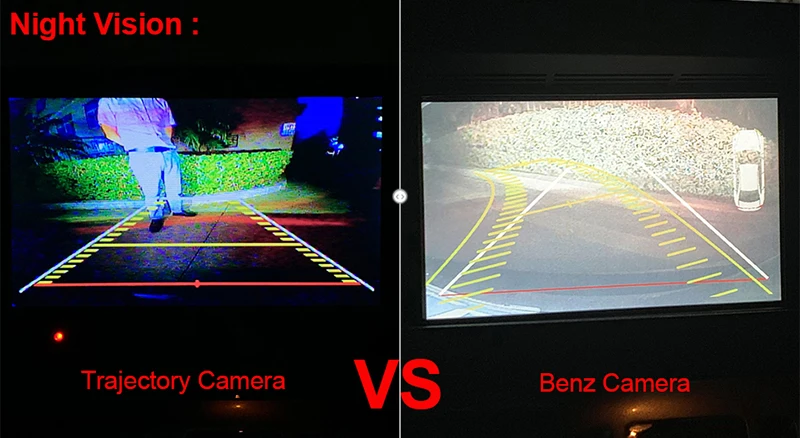 ** Траектория камеры VS камеры Benz сравнить фотографии: 1. Камера траектории имеет угол 155 градусов. Оригинальная камера benz имеет угол 120 градусов. 2. Траектория камеры ночного видения четче против камеры benz