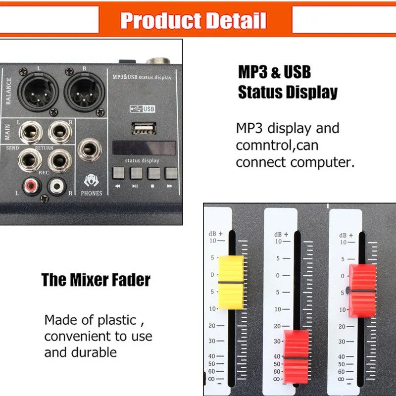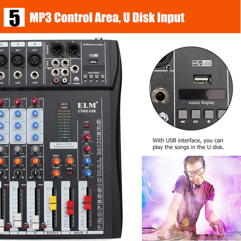 ПрофессиональныйМикшерный усилитель консоль с USB 48 в микрофон фантомная мощность