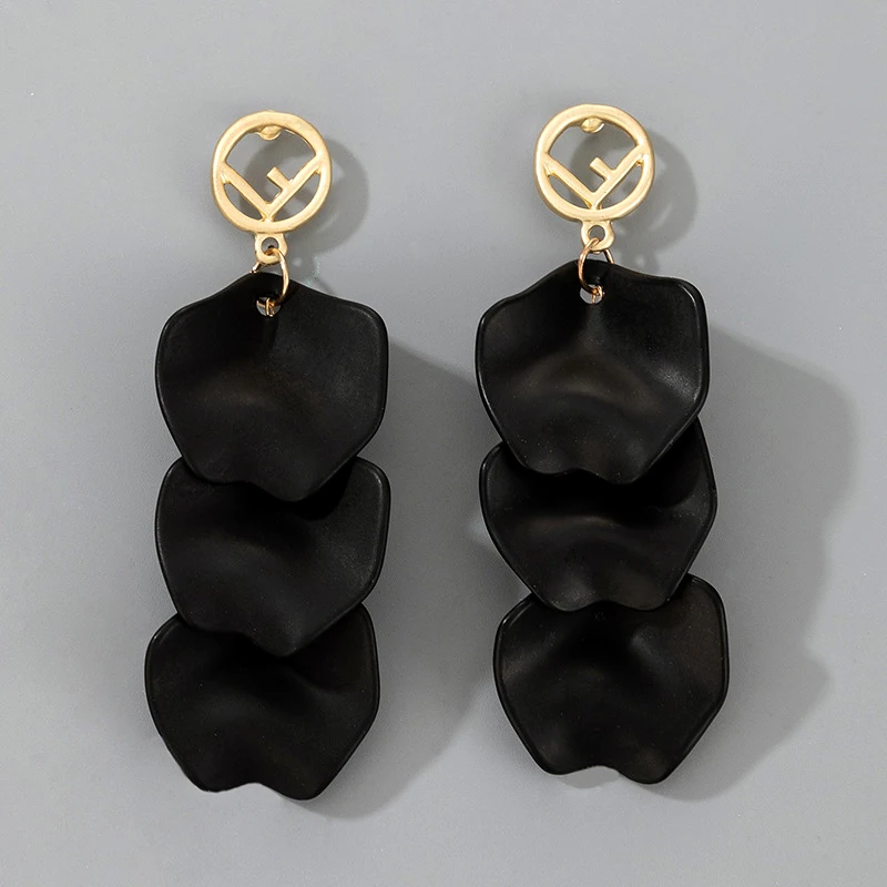 Новые женские черные серьги с лепестками, 3 шт., длинные серьги-гвоздики с цветком, модные шикарные женские ювелирные изделия, серьги для повседневной носкиUS $2,02