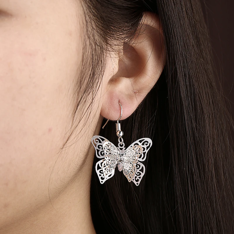 Шикарные Длинные серьги-бабочки винтажный металлический цветок бабочка Длинные женские серьги богемные очаровательные серьги Модные эффектные ювелирные изделияUS $2,2