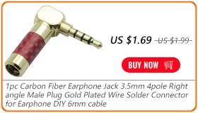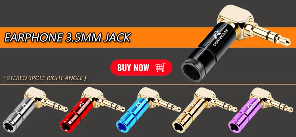 Luxury Jack 3.5mm Right Angle Earphone plug 3Pole Gold-plated Wire Connector Fit for 6mm Cable DIY Play Aluminum alloy tube