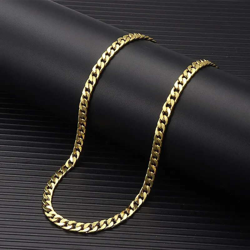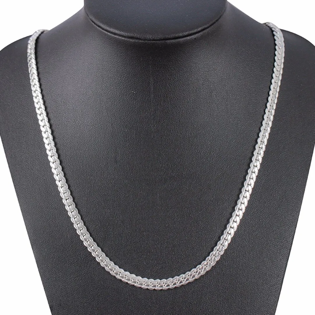 Мужская цепочка в стиле панк с серебряным покрытием, ожерелье 5 мм 20 см, мужская плоская цепочка, длинное колье, шарма, аксессуары для ювелирных изделий DIYUS $2,99