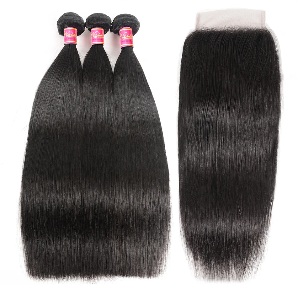 Nadula волосы индийские прямые пряди волос с закрытием 3 пряди с закрытием 100% Remy человеческие волосы с пряди