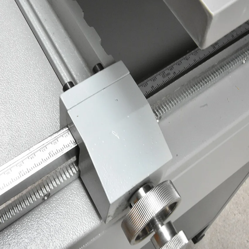 Настройка проста, просто нажмите требуемый размер листа в цифровой контроллер и задний датчик перемещается в требуемое положение. Зажим автоматически зажимает ваш запас и гильотинное лезвие активируется нажатием одновременно.