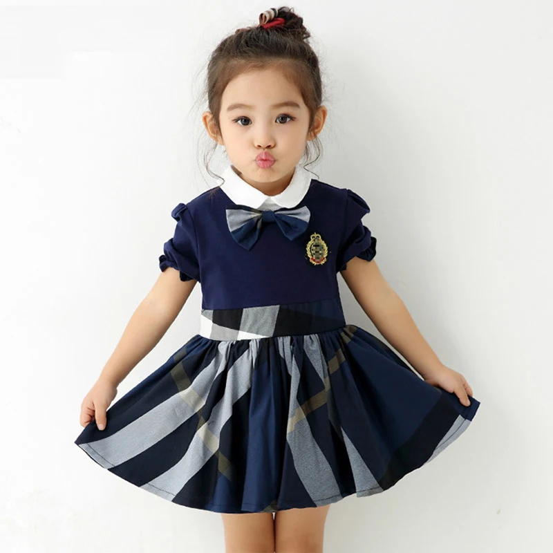 Платье для девочек; Синее платье в клетку с бантом; Летнее платье с пышными рукавами для девочек; Школьная форма; Одежда для брата и сестры; От 3 до 7 лет