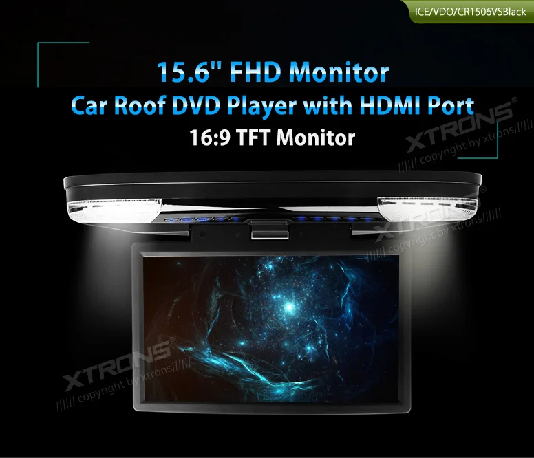 XTRONS верхний монитор 15,6 "HD 1080P Автомобильный потолочный флип вниз dvd-плеер видео светодиодный свет AUX IN + 2 ИК наушники