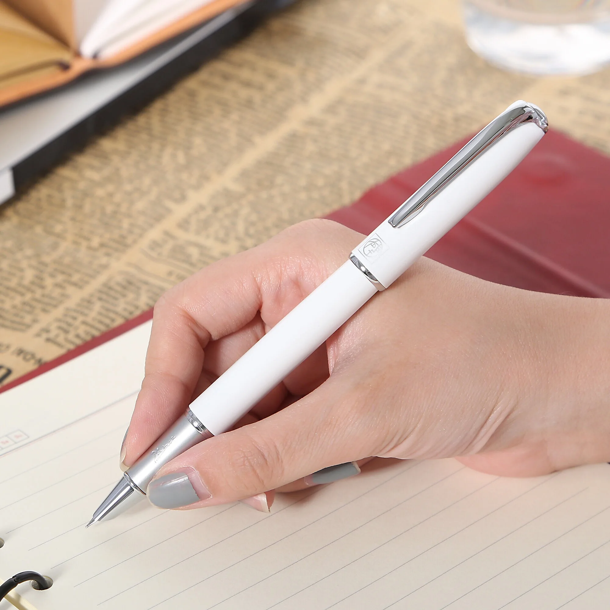 Ручка перьевая в металлическом корпусе с тонким наконечником | Канцтовары для