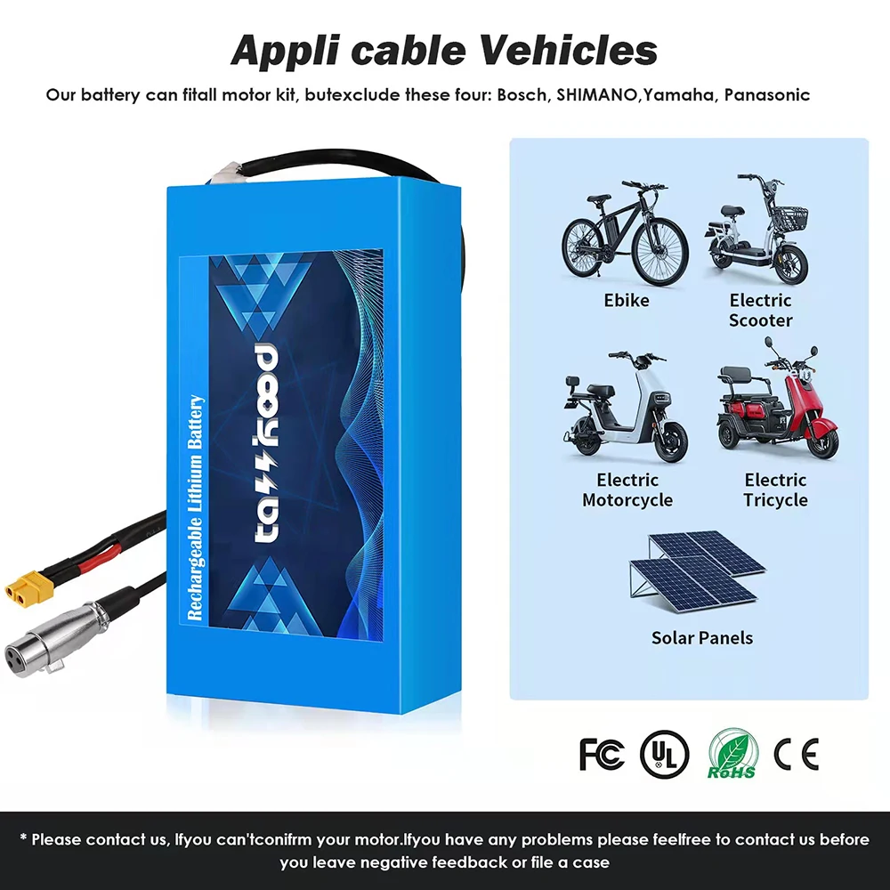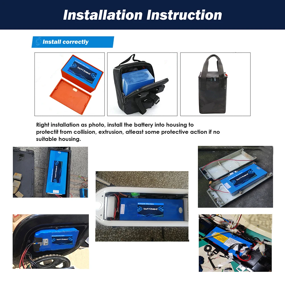 1. Enhanced Cycling Range: Our ebike battery pack is designed to offer you a longer cycling range without compromising on performance, so you can travel further and explore more.2. High Safety Standards: We prioritize safety in all our products, and our ebike battery boasts top-notch safety features to prevent overheating, short-circuits, and other hazards.3. Easy Installation: This battery pack comes equipped with all the necessary mounting hardware, making installation a breeze for most ebike models.4. Efficient Power Output: With a high-energy density and low discharge rate, our ebike batteries provide reliable and efficient power for optimal performance on every ride.5. Quality and Durability: Our ebike batteries are built to last, with rugged construction that resists damage from shock, vibration, and harsh weather conditions. Trust us for long-term reliability and performance.