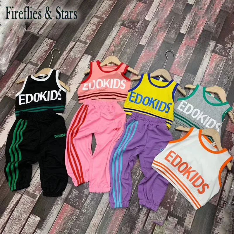 Название:Летний комплект из 2 предметов для девочек, детский укороченный топ + штаны, Детский костюм, Детский комплект, модная уличная одежда в полоску с буквенным принтом для детей 1-6 лет