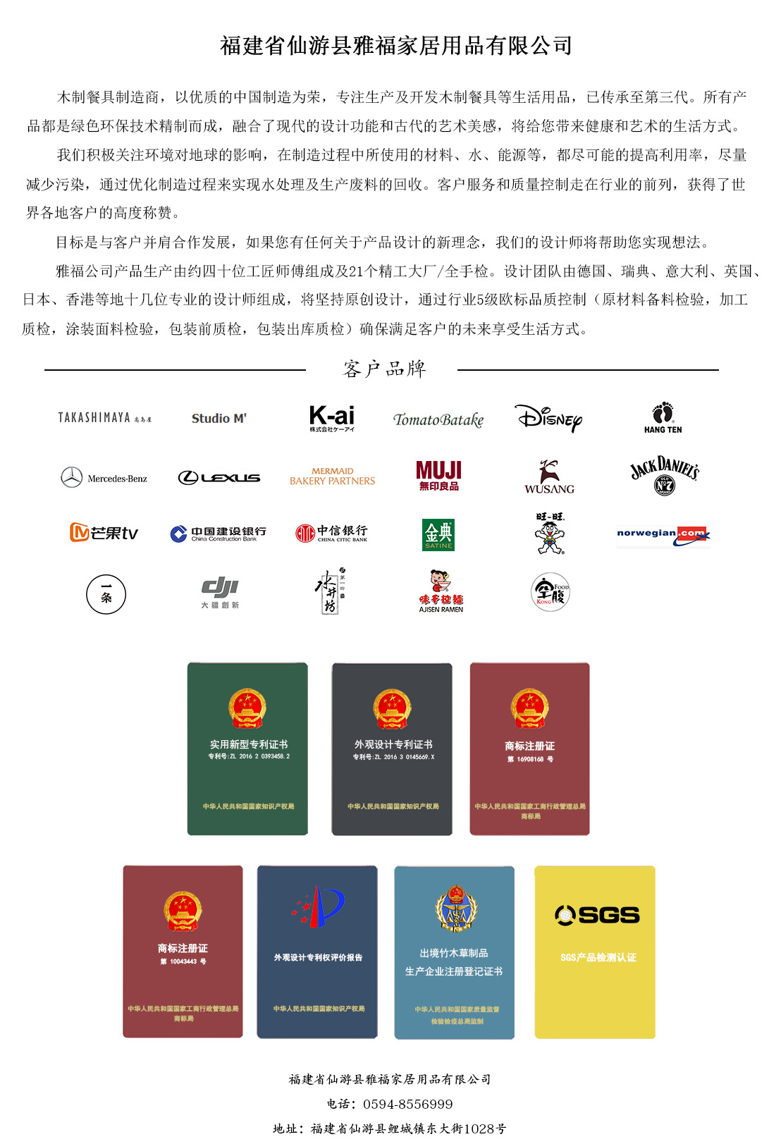 Yafu Лаковая посуда и домашний дизайнCo.,Ltd.Фокусируется на разработке и производстве деревянной посуды. Мы гордимся тем, что