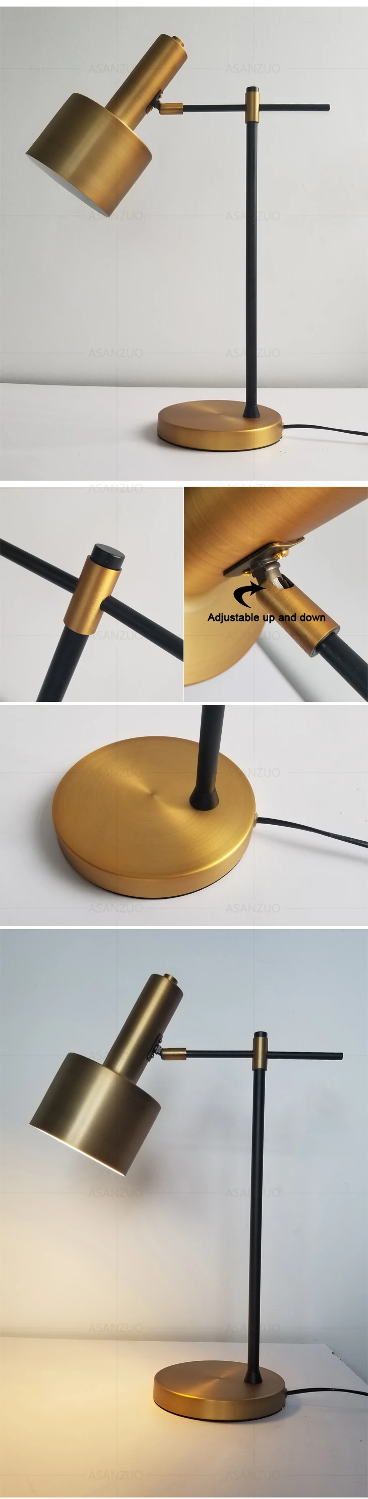 Американская настольная лампа для учебы, Ретро Регулируемый железный светильник для спальни, медный цвет, декоративный светильник для кафе-бара, бесплатная доставка