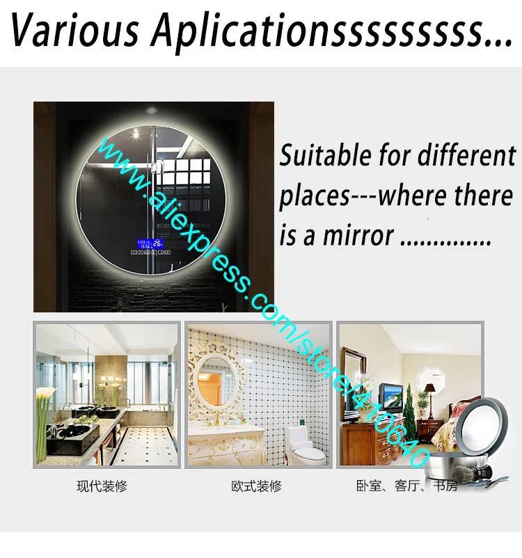 4: все фотографии с зеркалом вы можете увидеть на основных фотографиях, в описании, в рекламе, в видео или в любых других возможных местах,Только с цельюЧтобы показать конечную производительность или функции, после установки нашего сенсорного датчика зеркала, на вашемСтарый/существующийЗеркала.
