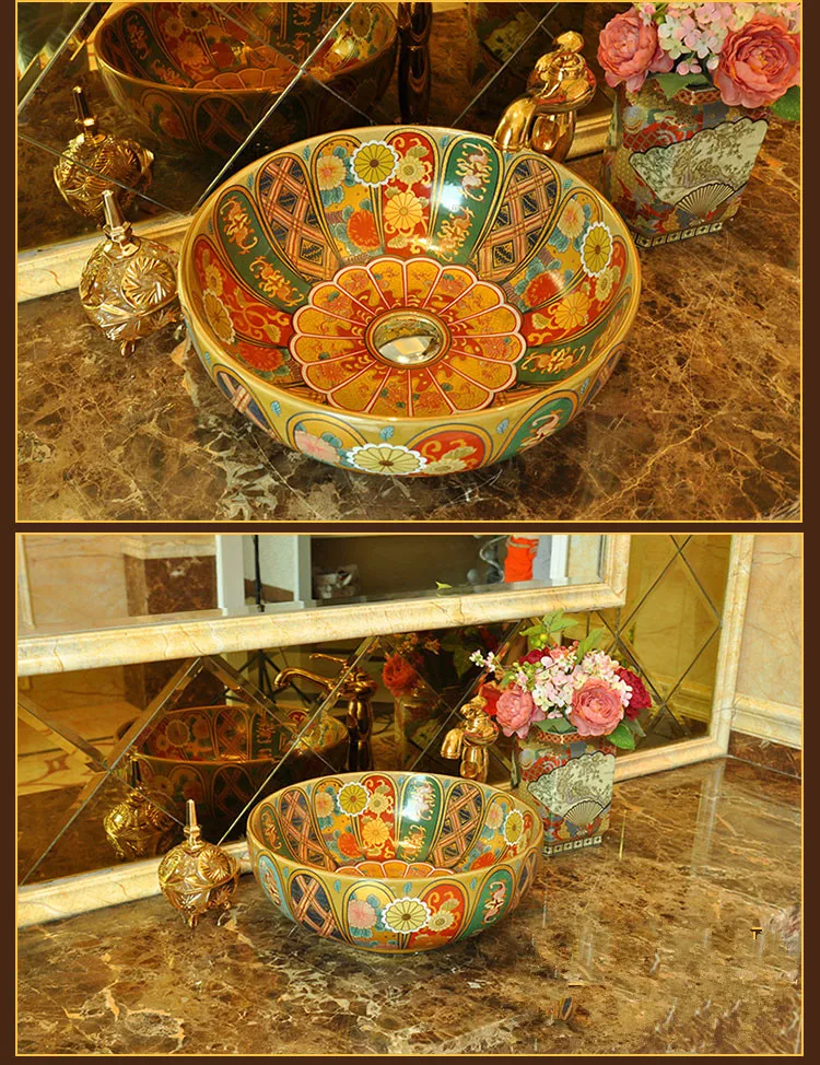 Китайский Художественный Ручной Работы старинный дизайн керамический умывальник круглый столешница умывальник Цзиндэчжэнь
