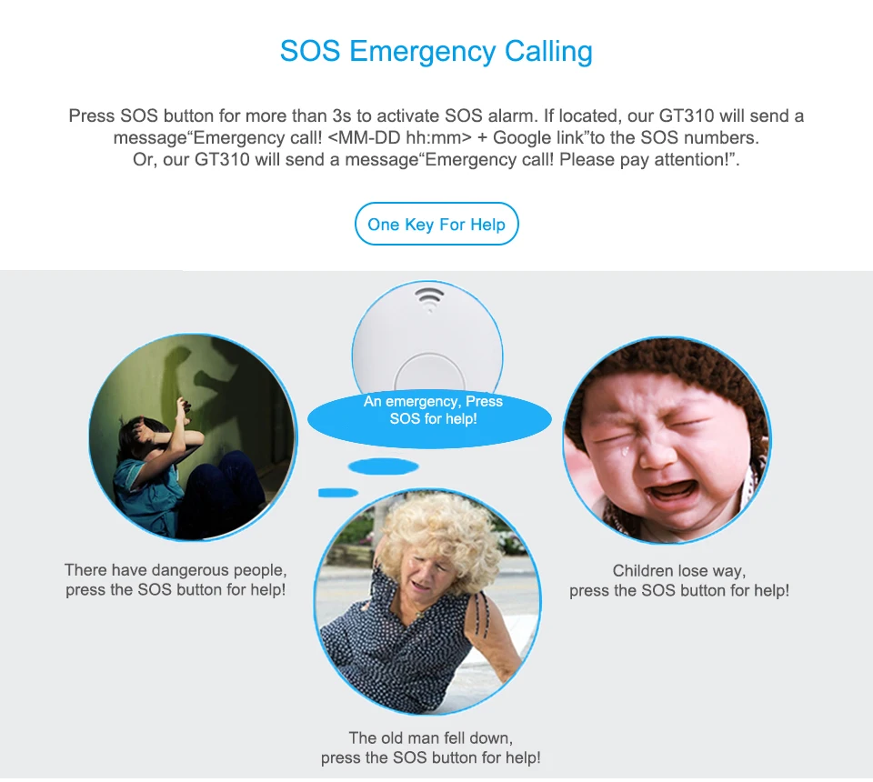 Selling point for the Q2 Portable GPS tracker: GPS+AGPS+LBS positioning Allow the location to be pinpointed accurately and rapidly. Two-way talk With MIC and speaker connected, it's easy to realize two-way audio. Listen-in Send comand to the device and you can hear the live voice around it. SOS call Water-resistant case to ensure stable operation in tough environment Falls alarm Alarm will be sent to nominated phone number if fall is detected. SIM change alarm If anybody change the device SIM card,alert will be sent.