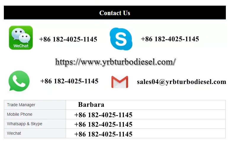 Шэньян Yiruibo Turbo Diesel Co.,LTD. Находится в Шеньяне и специализируется в этой области более 10 лет. Наша основная продукция-это инжектор, форсунка, контрольный клапан, фильтр, топливный насос, турбо зарядное устройство и так далее. С опытной и профессиональной командой, эти продукты экспортируются по всему миру, особенно в Южную Америку, Африка, Юго-Восточная Азия и США. Мы пользуемся хорошей репутацией среди наших клиентов, мы стремимся построить долгосрочное сотрудничество с зарубежными клиентами, на основе взаимного понимания надежного партнерства и разумной цены. Мы верим в то, что нет идеального клиента, но идеального поставщика. Добро пожаловать, свяжитесь с нами и поищите сотрудничество для взаимной выгоды.