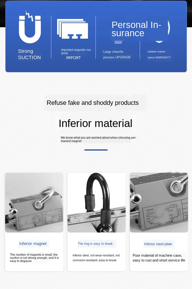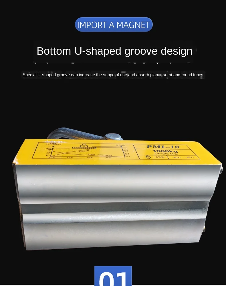 Магнитный подъемник изготовлен из сверхсильных неодимовых магнитов, которые используются для подъема стального листа, блока, стержня, цилиндрического и другого магнитного материала. Это не требует электричества, который широко используется в промышленном мире для повышения эффективности стальных проектов. Каждый товар должен быть протестирован, прежде чем он будет отправлен из компании.