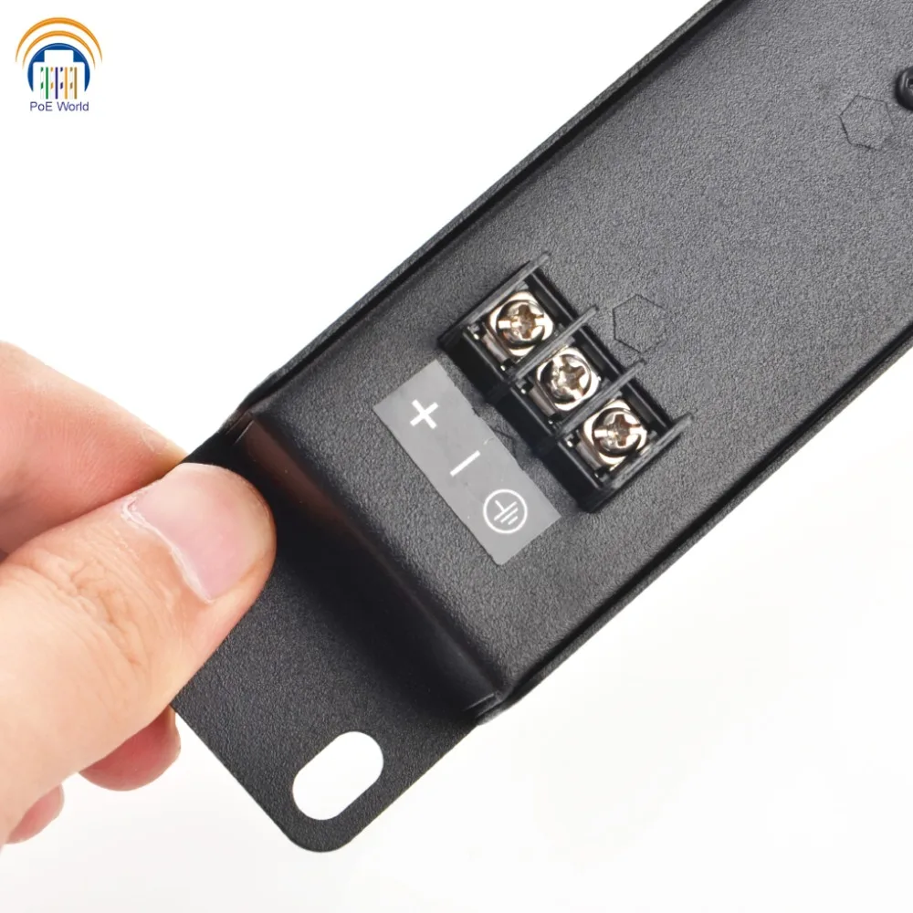 16 портов PoE панель используется 10/100M Ethernet, верхний Rj45 гнезда находится в форме «LAN/переключатель/ПК» 1/2 и 3/6 являются передачи данных. Разъем RJ45(power + data) предназначен для передачи данных и питания: 1/2 & 3/6 передачи данных, 4/5(+) и 7/8(-) для питания. Пассивный POE состоит из 12 комплектов разъемов Rj45 и двух разъемов питания постоянного тока 60 В. Запросы на входную мощность 160 Вт или более преобразователей переменного тока в постоянный ток. В Вход dc Диаметр отверстия составляет 2,5 мм, а другой конец OD id 5,5 мм. , А на втором-3 контактный разъем питания для Вход.