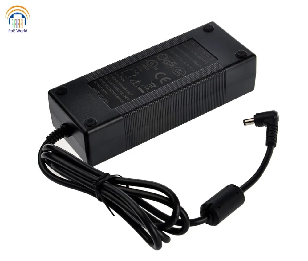 Каждая розетка обеспечивает защиту от короткого перелива (защита тока 650ма + 15%-15%). Общая выходная мощность должна быть ниже максимальной входной мощности преобразователя переменного тока. Если нет, необходимо рассмотреть возможность повышения AC-DC преобразователя питания. Термическая формула для AC-DC преобразователя питания составляет 10 Вт на Набор RJ45 (1 комплект = 2 гнезда RJ45.) Например, 16x10W = 160W для пассивной панели PoE с 16 портами.
