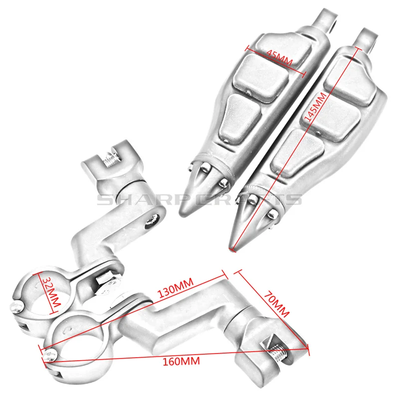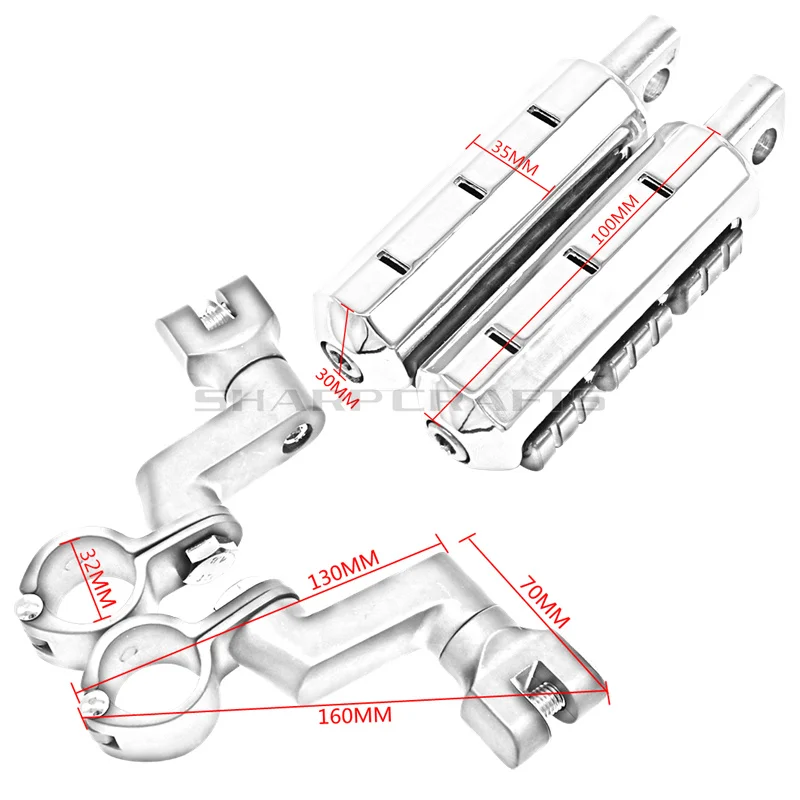Подходит для любых велосипедов с 32 мм (1-1/4 ")(1,25") защита двигателя или рама трубы. Отлично подходит для Honda/Yamaha/Kawasaki/Suzuki/BSA/Norton/Triumph/Bobber, Chopper, Cafe racer, ATV, UTV, скутер и т. Д. С 1-1/4 "ограждениями для автострады.