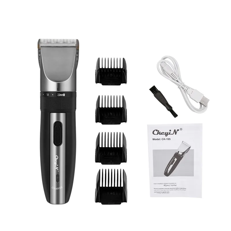 Профессиональная перезаряжаемая машинка для стрижки волос, регулируемая с 4 концевыми гребнями, низкий уровень шума, триммер для волос, набор для стрижки детей и мужчин