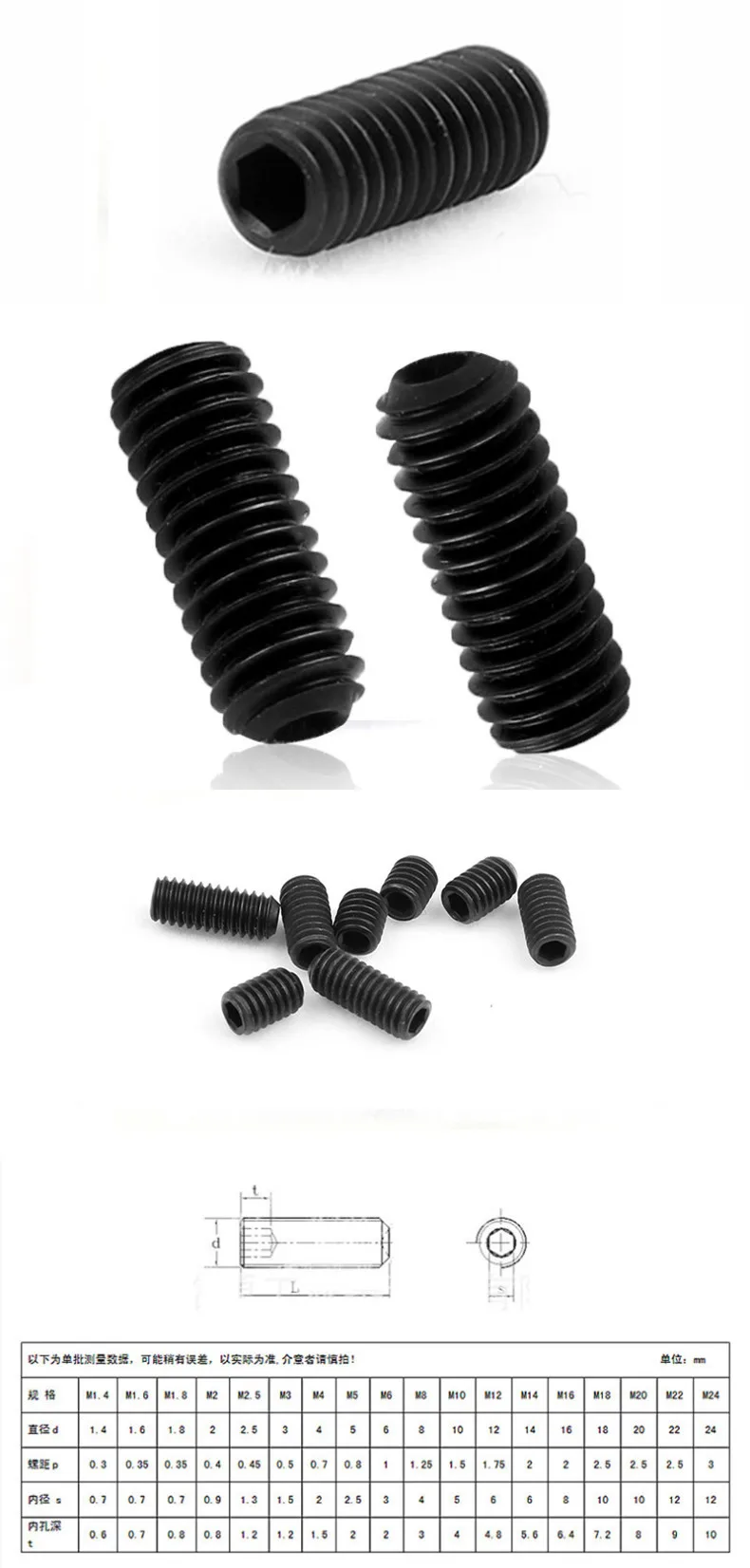 100 шт. M3 M4 DIN916 черная углеродистая сталь метрическая резьба Grub Винты Внутренняя шестигранная розетка набор винтов Безголовый болт