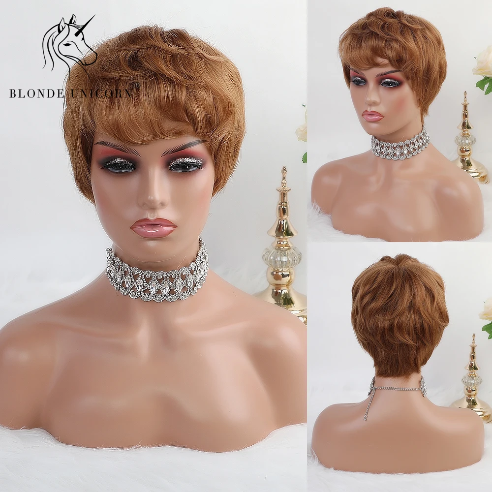 Парики из синтетических волос с бахромой блонд Единорог, парики из коротких волос 8 дюймов, натуральные вьющиеся человеческие волосы и синтритный парик для белых женщин
