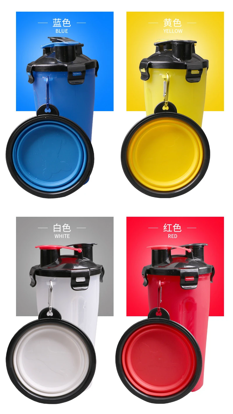 2 в 1 кормушка для домашних животных портативная бутылка для еды и воды с складная миска для собак Pet путешествия еда контейнер для запасов для собак кошек