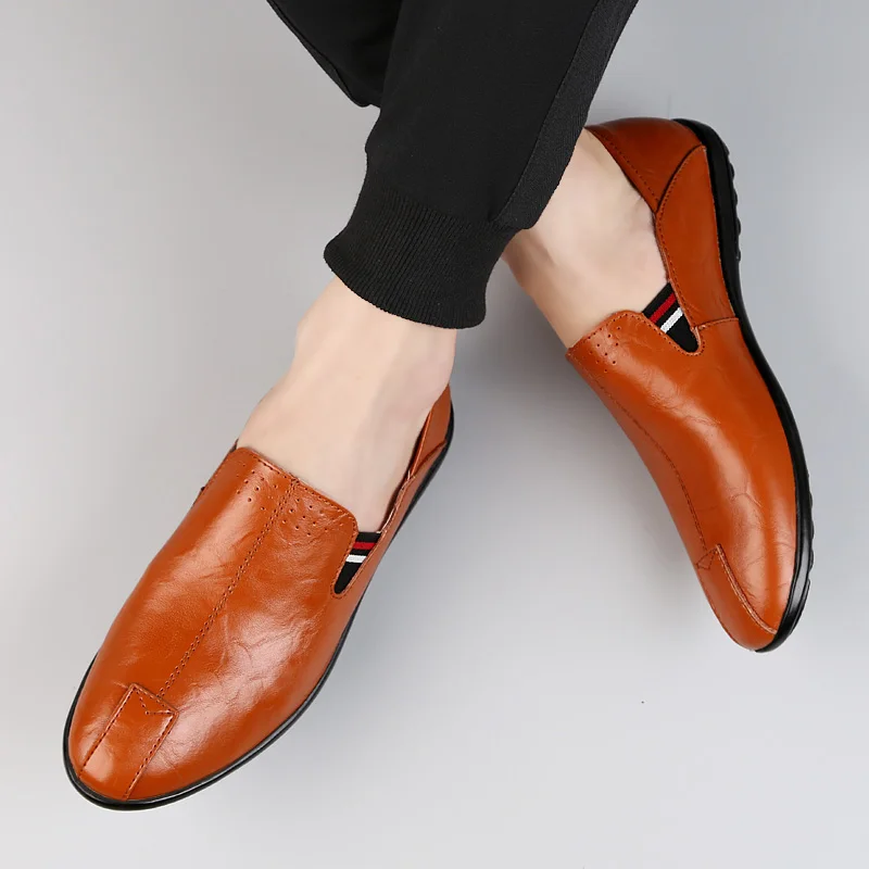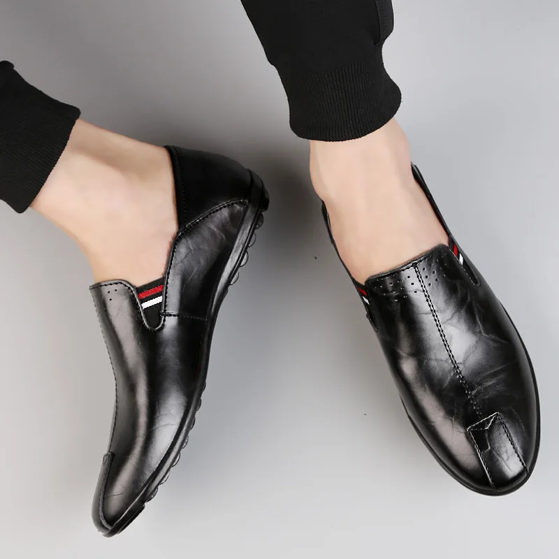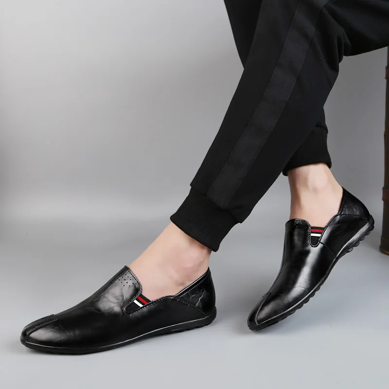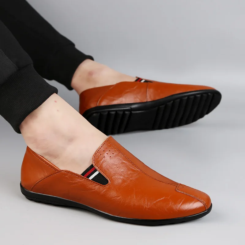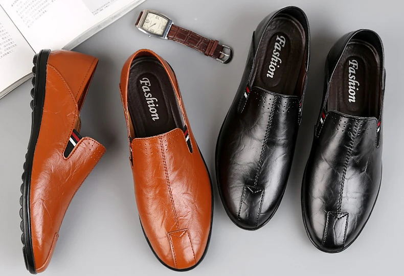 Мужские туфли из натуральной кожи без застежки, повседневные туфли из дышащие Туфли-Лоферы натуральной кожи на плоской подошве, большие размеры 45, 46, для лета