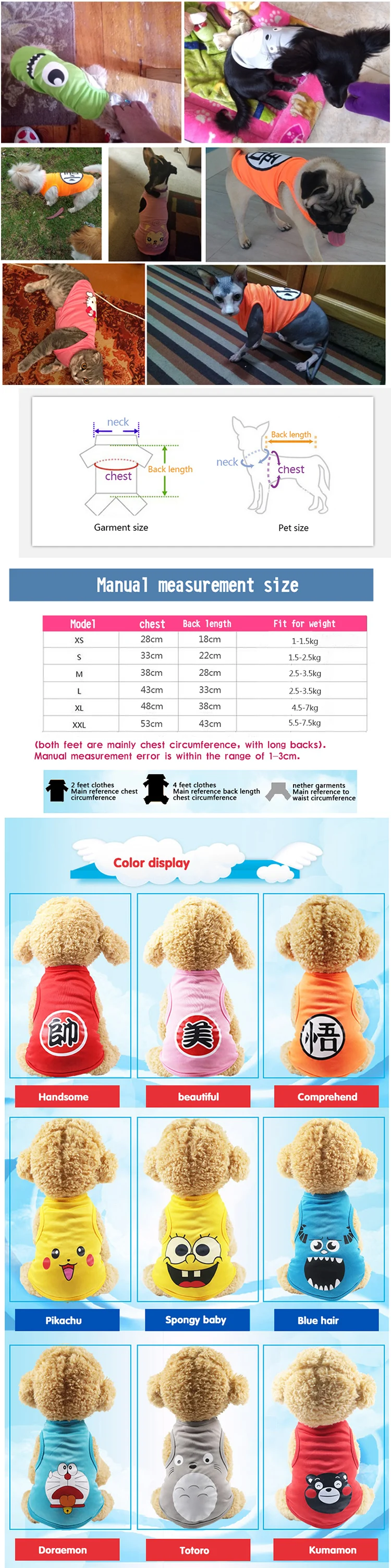 Примечание: 1 дюйм = 2,54 см, пожалуйста, выберите больший размер, если ваш питомец растет быстро или между 2 размерами Популярная Милая Одежда для собак, футболка с рисунком кота, мягкая одежда для щенков, Одежда для питомцев, летняя рубашка, повседневные жилеты для маленьких питомцев, XS-XXL 1. Ручное измерение может иметь погрешность 2-3 см. 2. Для повышения комфорта домашних животных рекомендуется выбрать размер один.