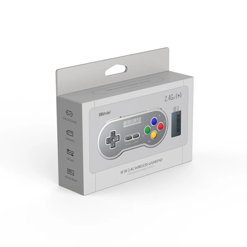-Ретро-дизайн, оригинальная кнопка нажатия, такое же прикосновение, такое же чувство. -Обновленная прошивка для расширения функций. -Приемник 2,4G работает непосредственно с SNES/SFC classic edition. -Беспроводный доступ к меню SNES/SFC classic edition HOME. -Usb-подключение для Windows, macOS, Raspberry Pi, Android и многое другое. -Приемник поддерживает DualShock 3, DualShock 4, DualShock 4 Pro, Wii Remote, Wii U Pro, Nintendo Switch Joy-Con, Nintendo Switch Pro -Система совместима с SNES/SFC classic edition. -Подключение: Bluetooth 2,1 + EDR, класс 2 (2,402-2,48 ГГц) -Встроенный литий-ионный аккумулятор 500 мАч в течение 24 часов непрерывного воспроизведения -Приемник поддерживает классический порт питания NES