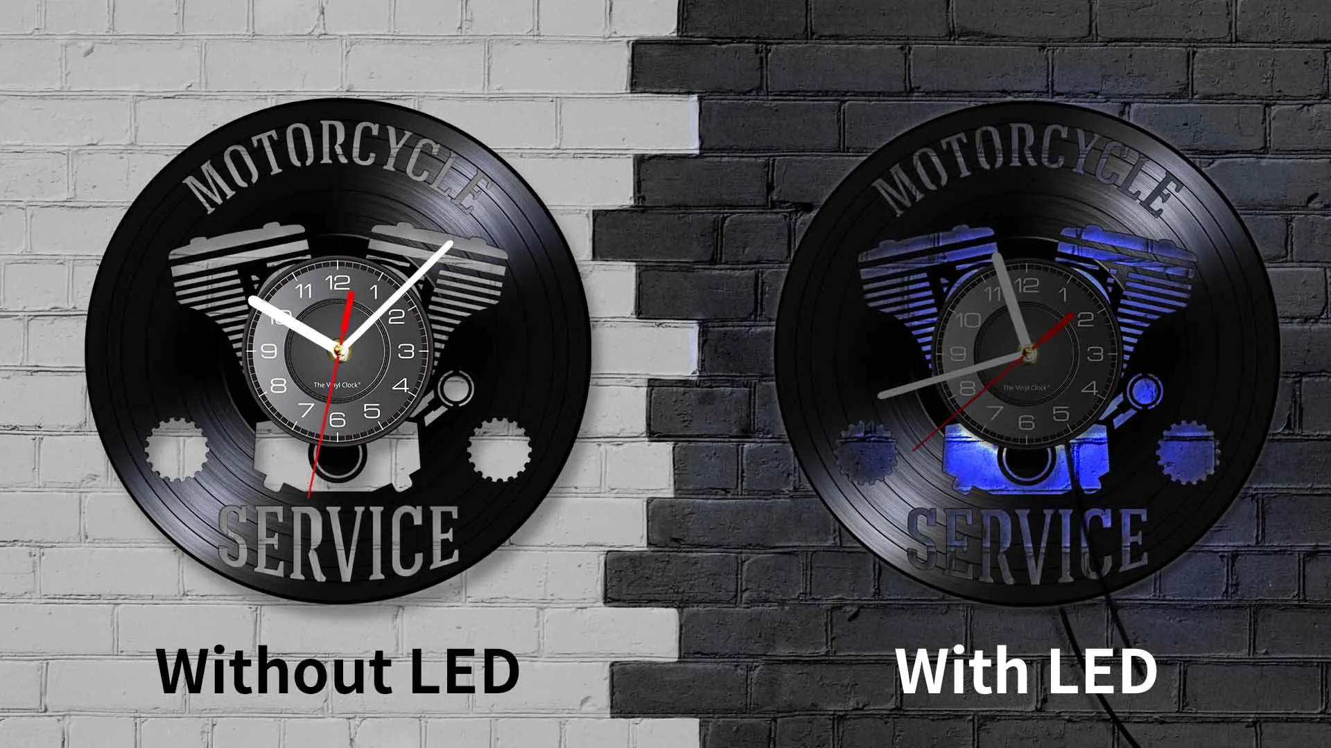 If you choose the LED version lighting wall clock, you will be given 16 Keys remote controller to customize the colors of the LED vinyl light. With the remote controller, you will have a variety of light setting which include to power on or off lights, pause or play, dim or change speed of lights and also to create rainbow of colors.It is perfect for a wall decoration and also great as gift.