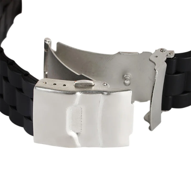 Этот ремешок для часов изготовлен из пластиковой ленты и раскладной застежки с быстросъемным механизмом и защитным механизмом.