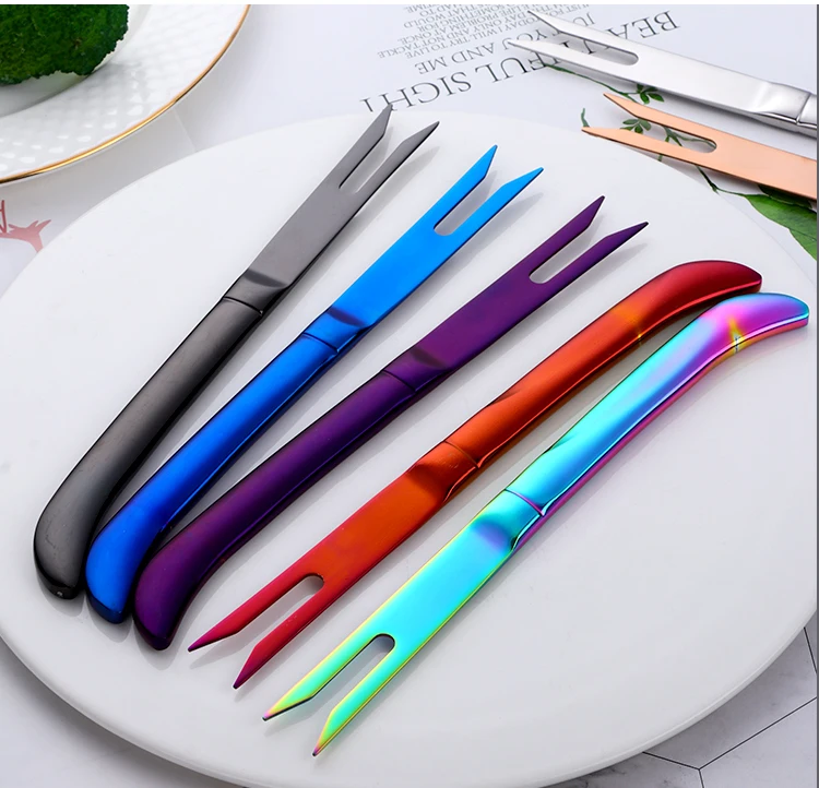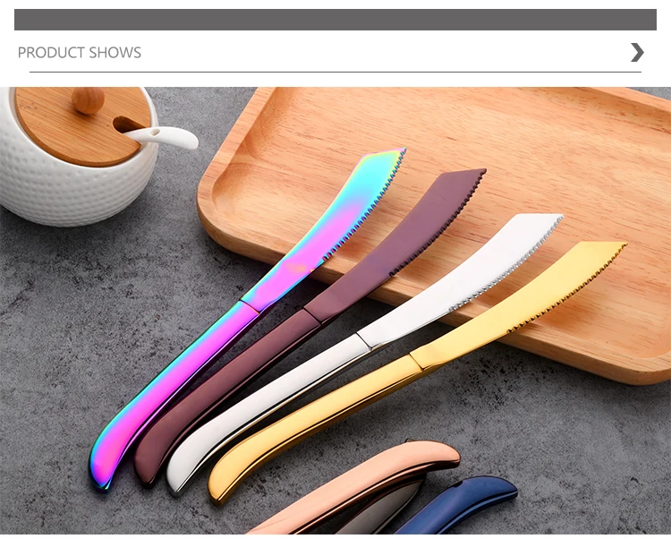 Радужный красочный полированный нож для стейка из нержавеющей стали, острый набор кухонной посуды, столовые приборы для ресторана, Западный нож для еды, 3 шт.