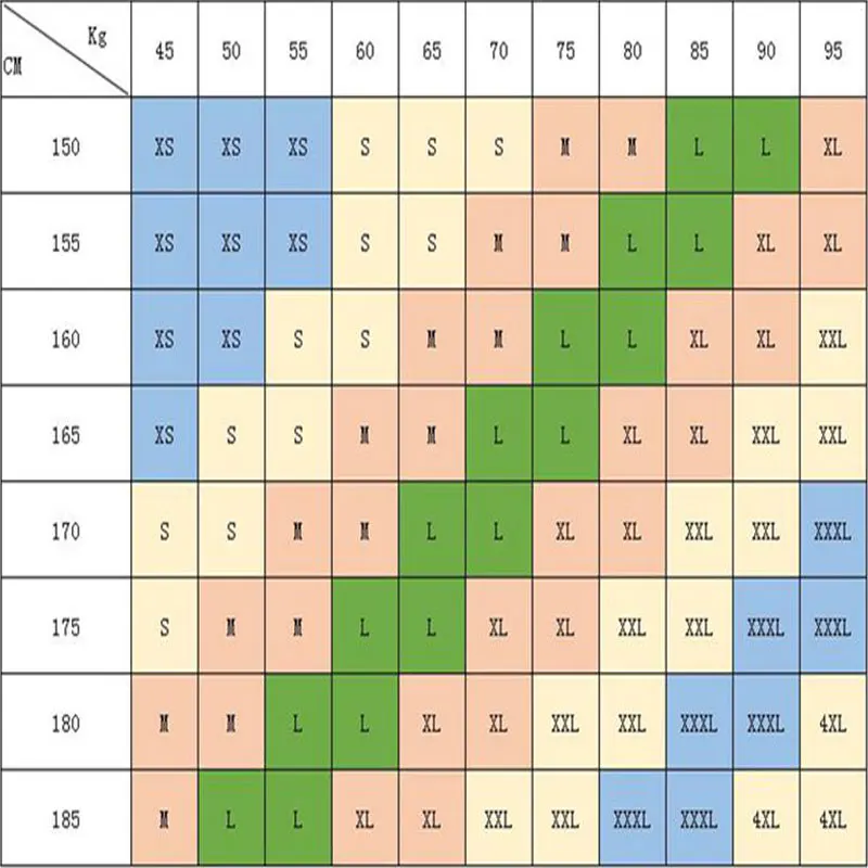 | XXL | 10 | 14 | 40 | - | - | - | - | - | |