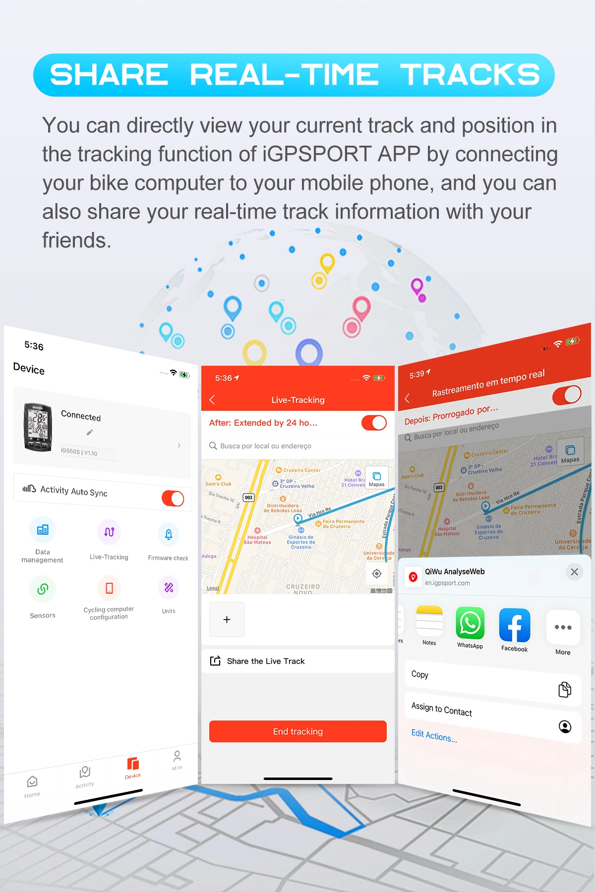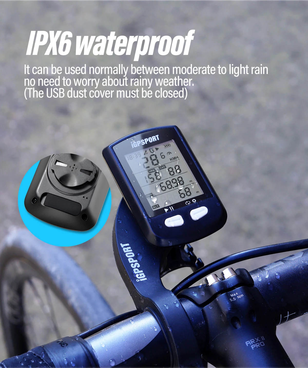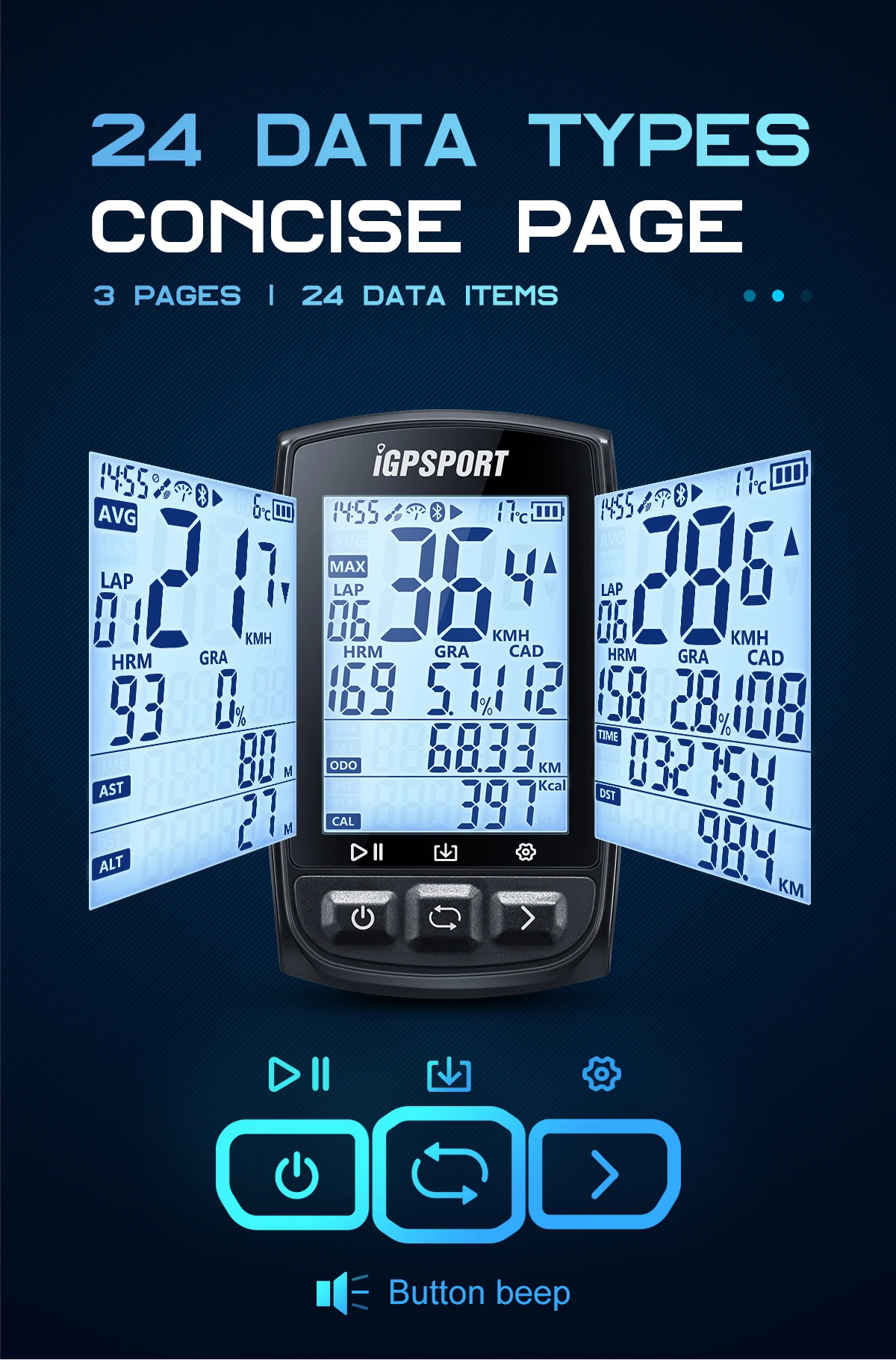 iGS20E GPS Cycling Computer support high-sensitivity GPS receiver for fast positioning. Real time display: speed, average speed, max speed, trip distance, total distance, altitude, temperature, time, date, Calorie. Up to 25 hours working time. Smart turn on/off backlight when sunrise and sunset. Supporting upload files to www.igpsport.com(fit format) for Analysis.