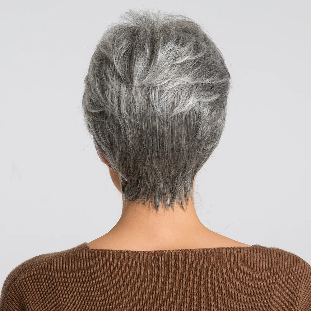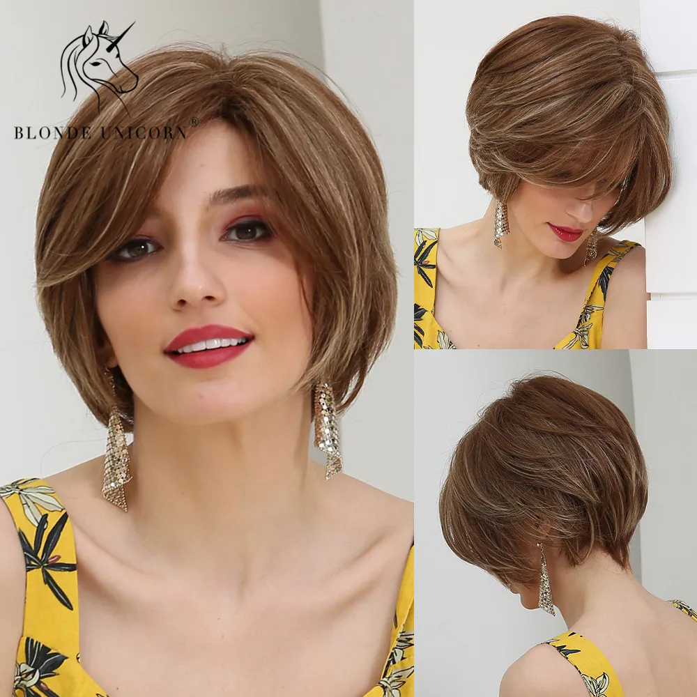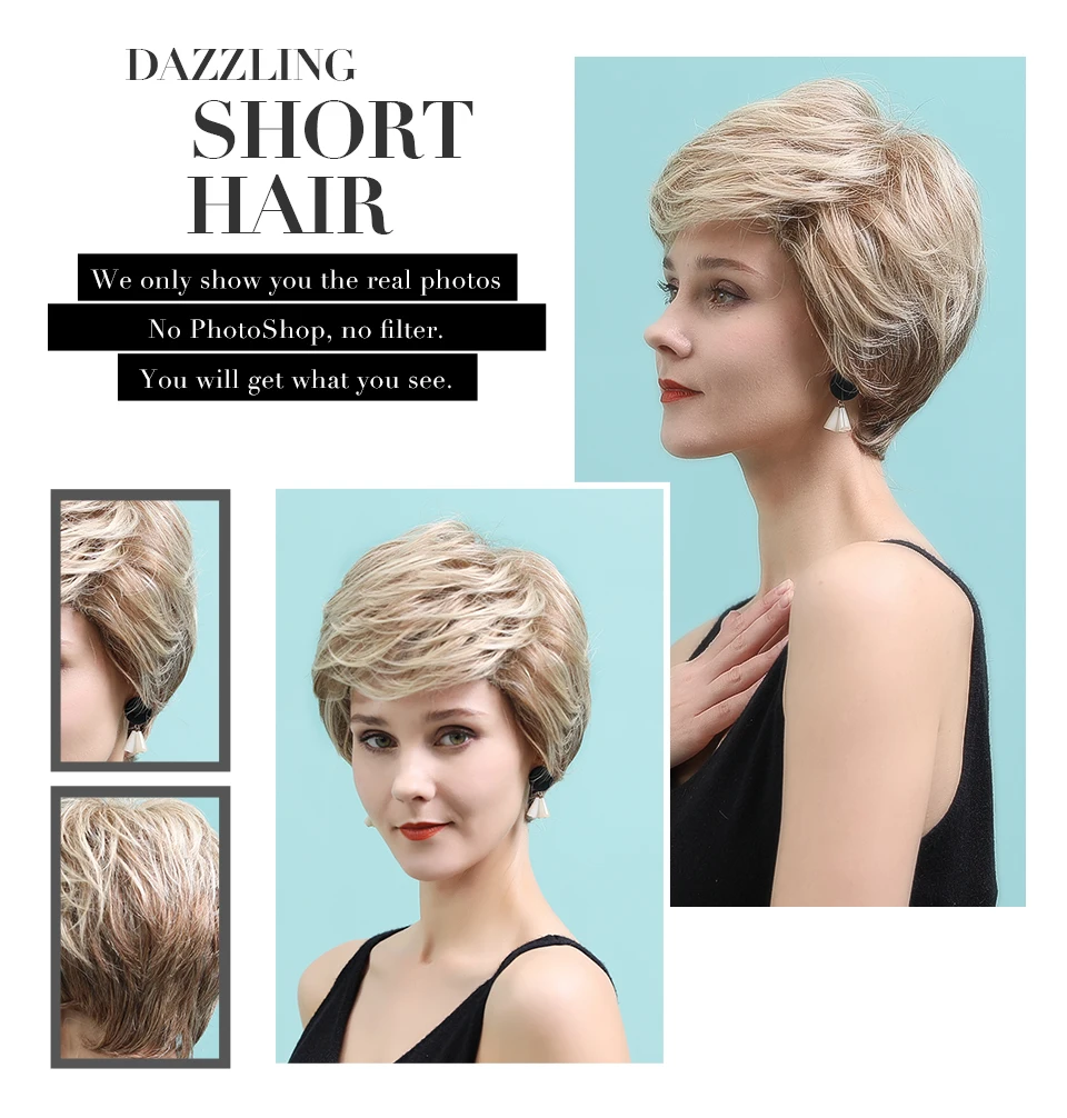 Блонд Единорог пушистый пикси Cut короткие волосы парики пепельно-серый черный Омбре подчеркивает Смесь человеческих волос парик с боковой челкой для черно-белых женщин