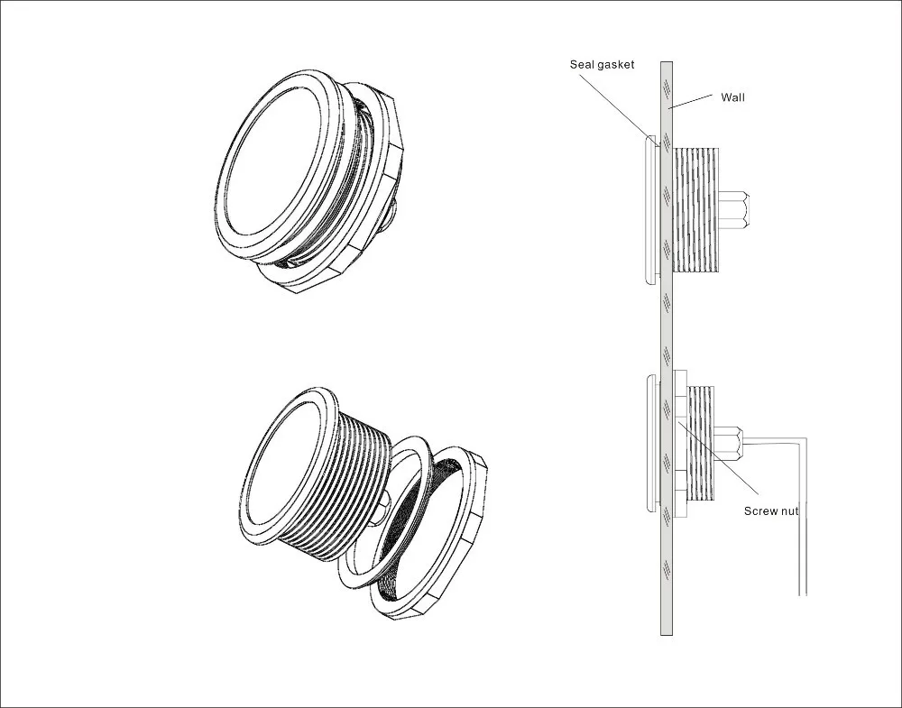 Размер контроллера: ДИА. 48 (38,5) xh33мм, рекомендуемый размер отверстия для стены-диам. 40-43 мм.
