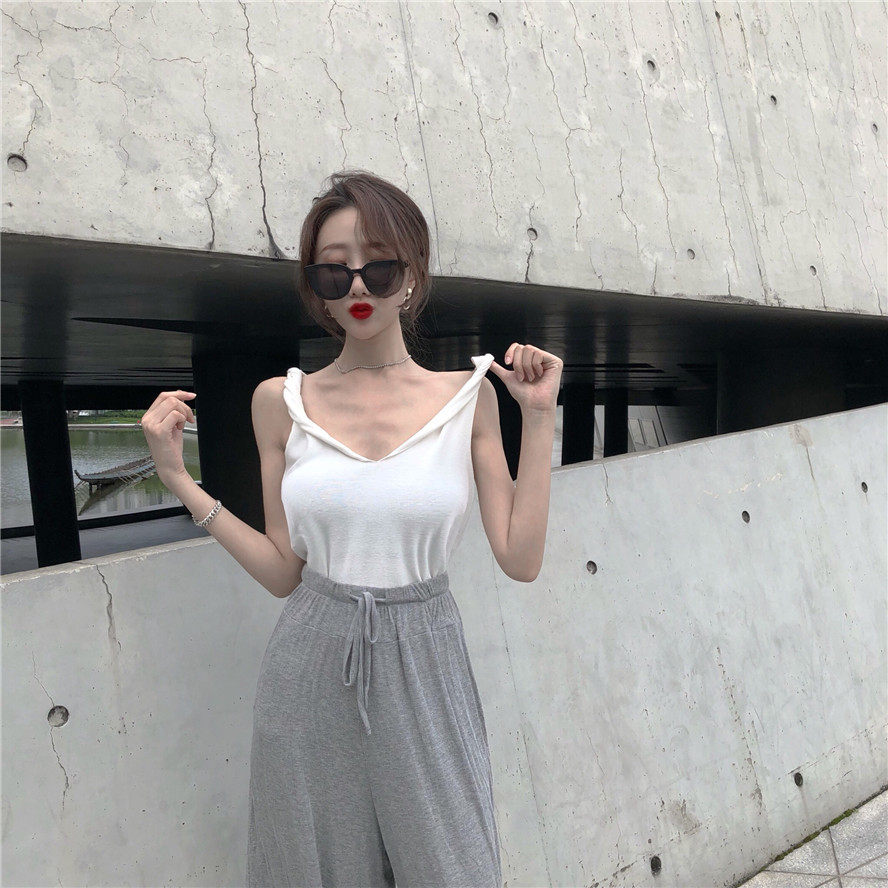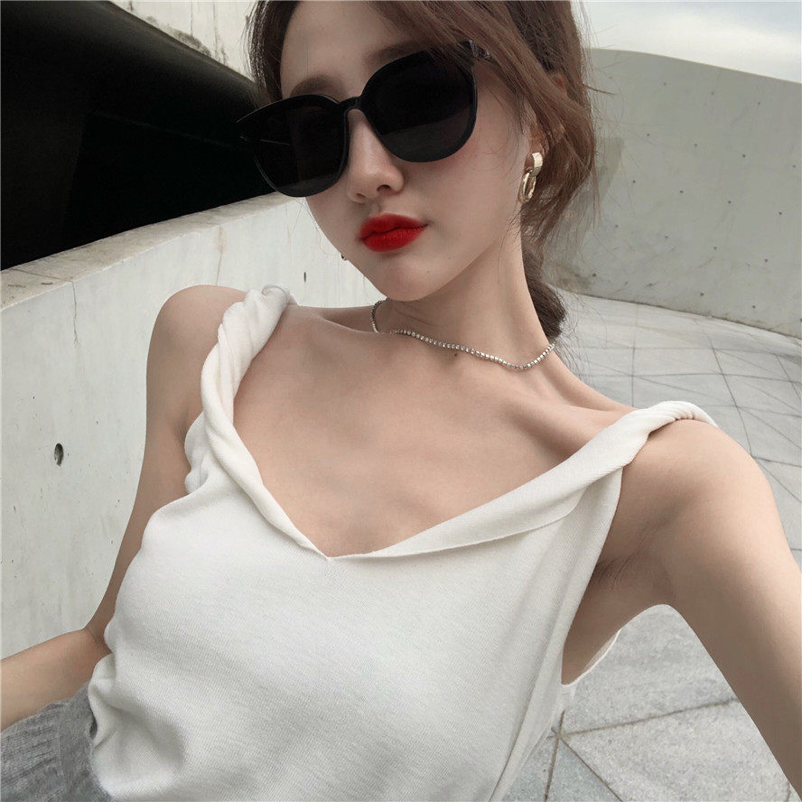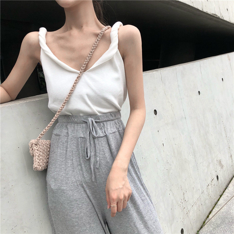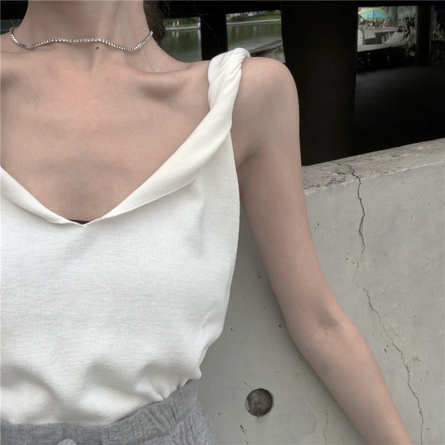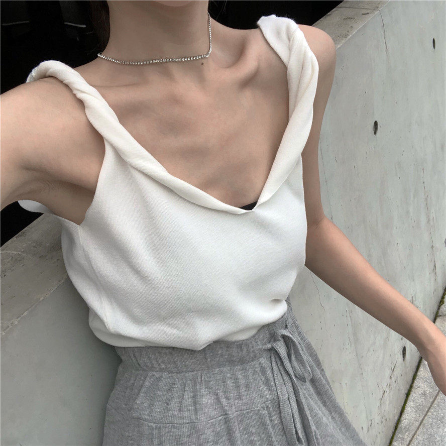 Корейский стиль сплошной цвет укороченный топ женский Глубокий v-образный вырез сексуальный camis 2018 летний Повседневный вязаный Топ Тройники Женский