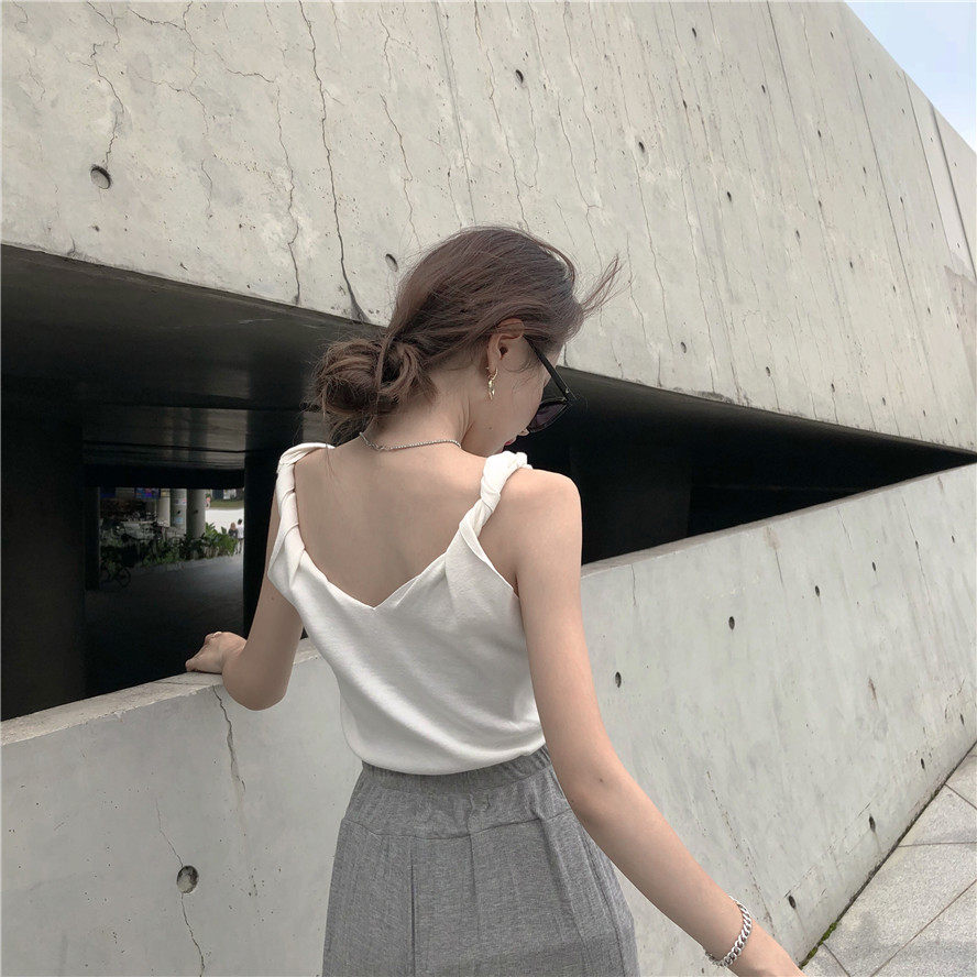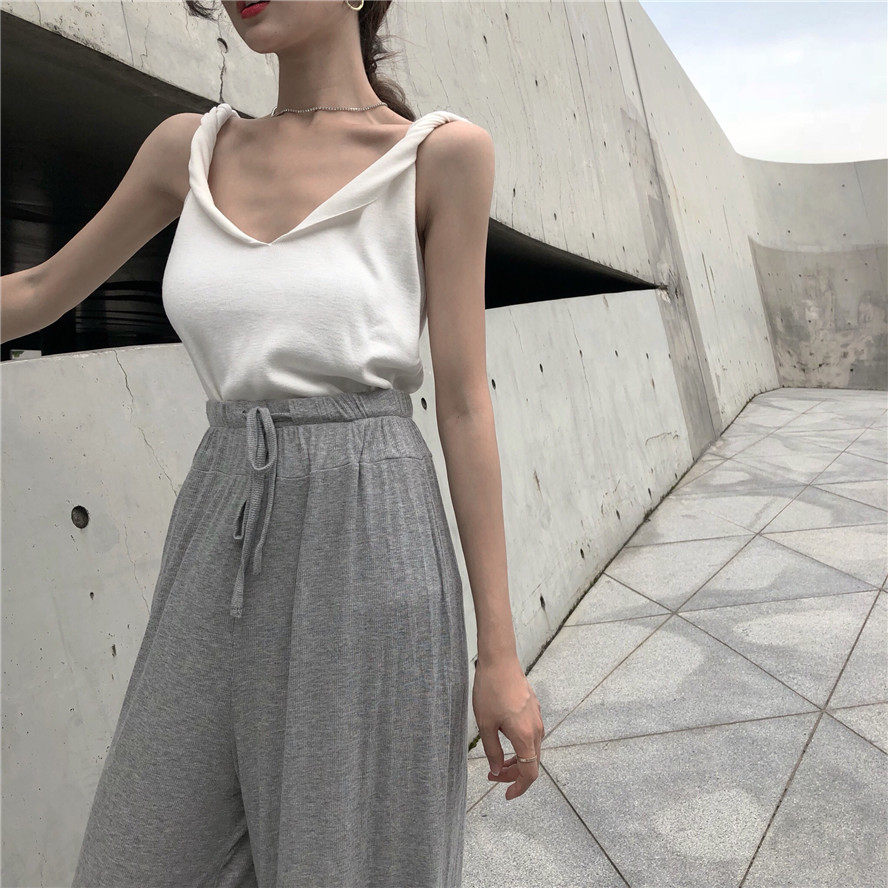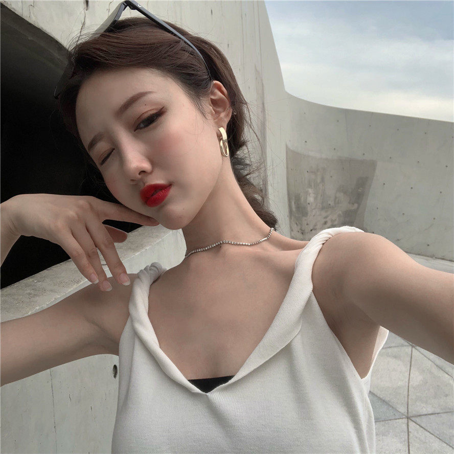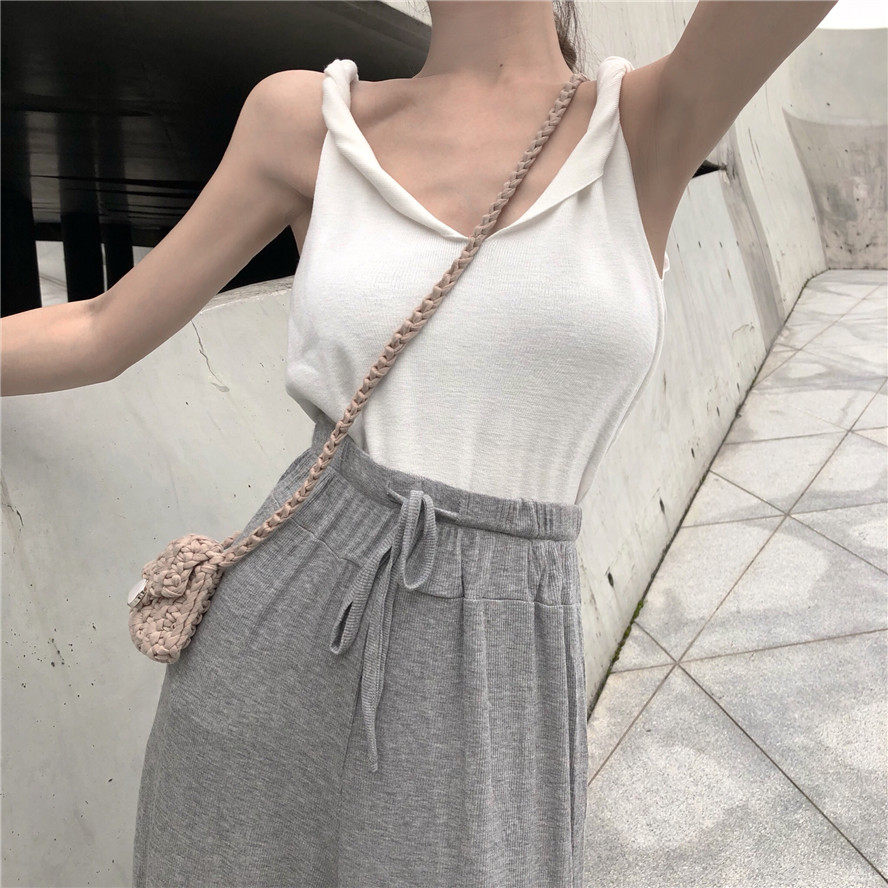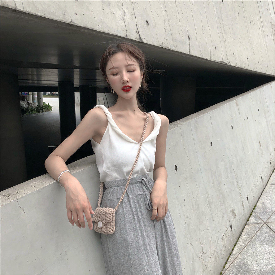 Корейский стиль сплошной цвет укороченный топ женский Глубокий v-образный вырез сексуальный camis 2018 летний Повседневный вязаный Топ Тройники Женский