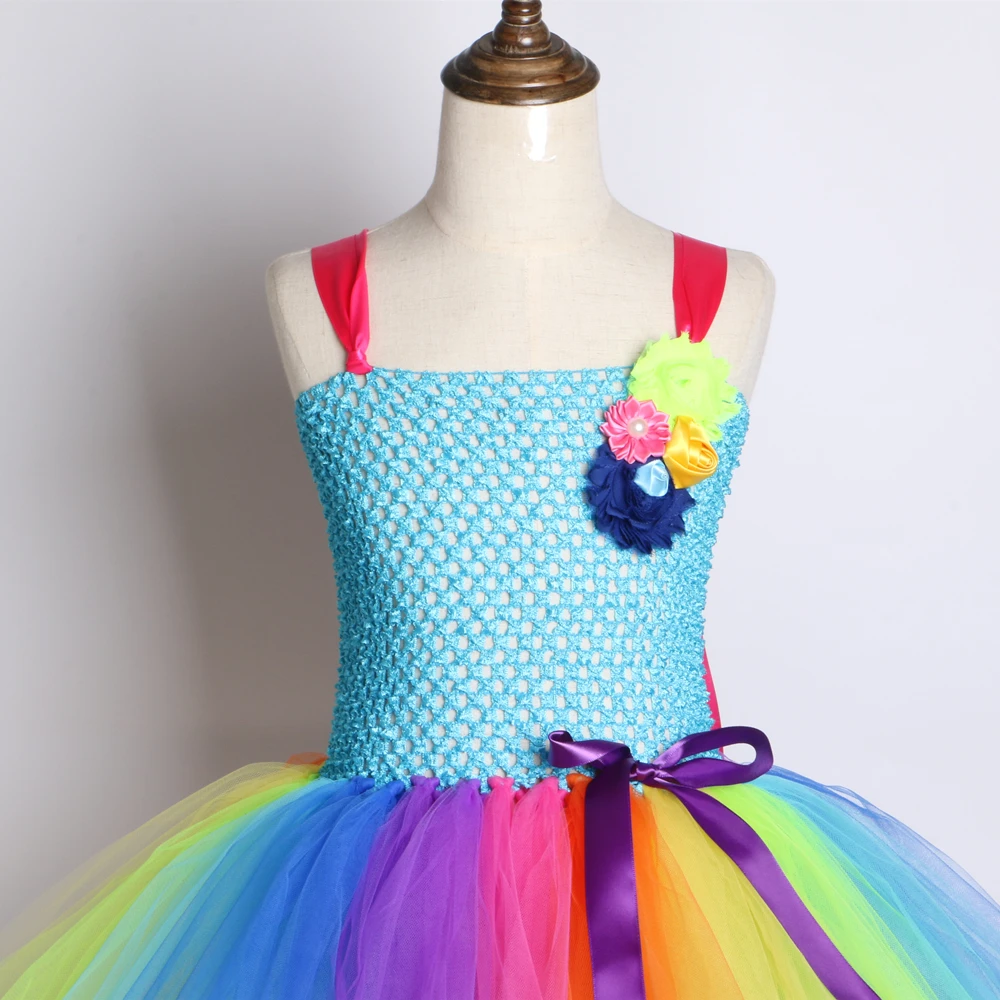 Rainbow Unicorn Girls Tutu Dress Tulle Flower Baby Girl Birthday Party Dress Children Kids Halloween Pony Unicorn Costume 2-12Y