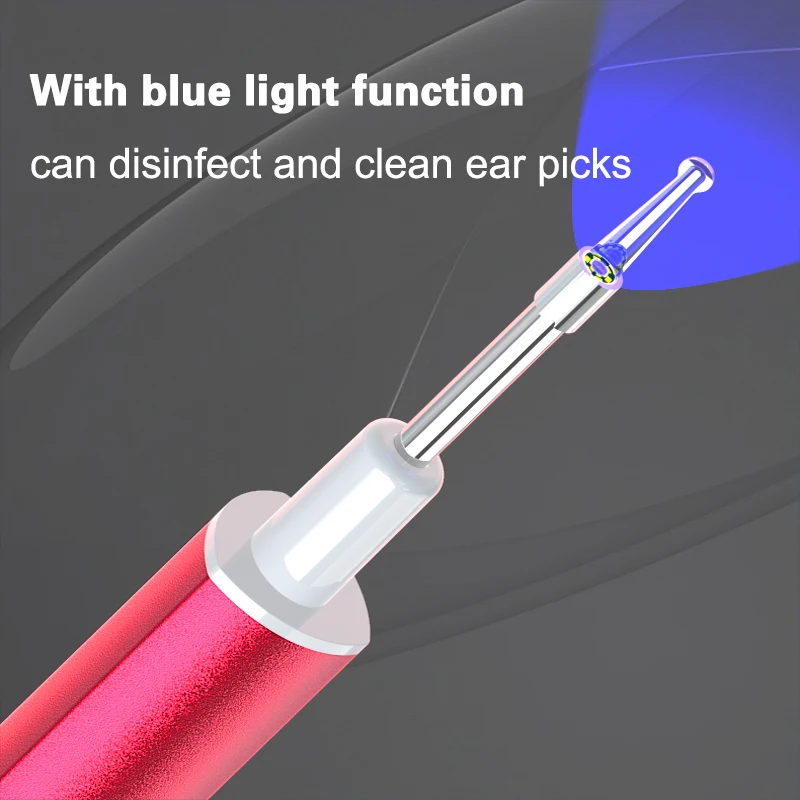Синий светильник, функция очистки: синий светильник, функция дезинфекции и очистки ушей. Противотуманные и взрывозащищенные линзы делают их более удобными и безопасными. 4 шт. Ушная ложка для детей и взрослых, гуманная конструкция поможет вам легко удалить ушной воск.