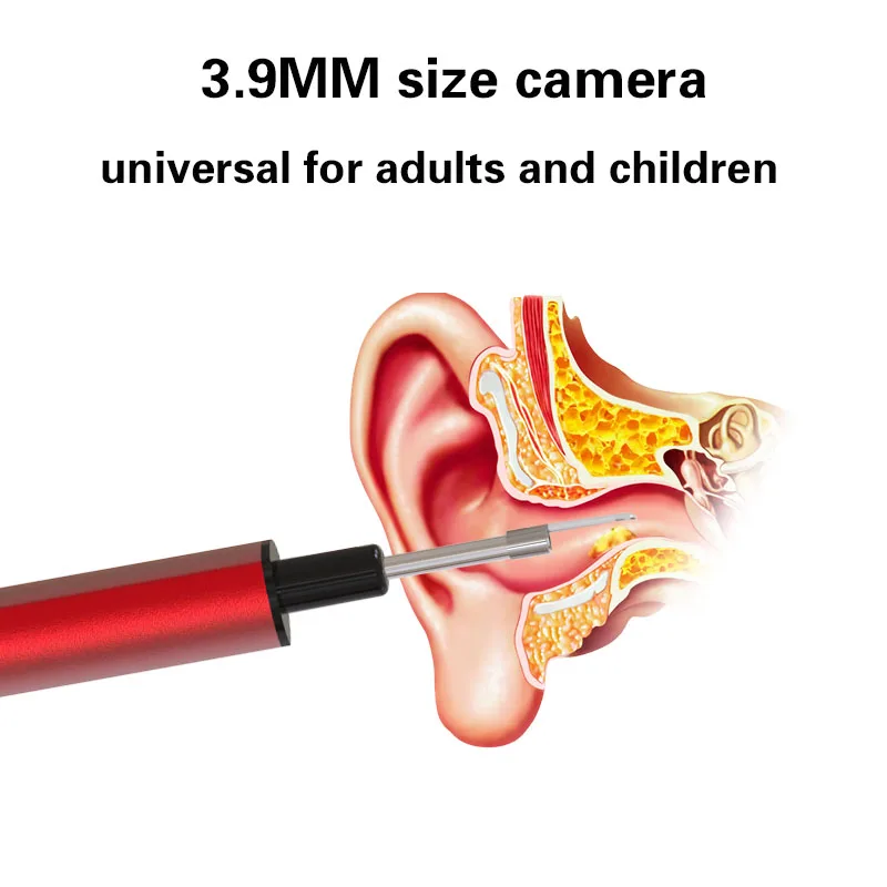 HD Камера с 6 светодиодный: Ультра маленький 3,9 мм Диаметр отоскоп Камера оснащен 1080P HD CMOS сенсор и 6 светодиодный свет, вы можете легко получить доступ к ушному каналу, обеспечивает более четкое изображение и более выдающуюся цветопередачу. Камера фокусное расстояние составляет 0,55 "-0,78" (1,4 см-2 см), чтобы получать четкие изображения и видео
