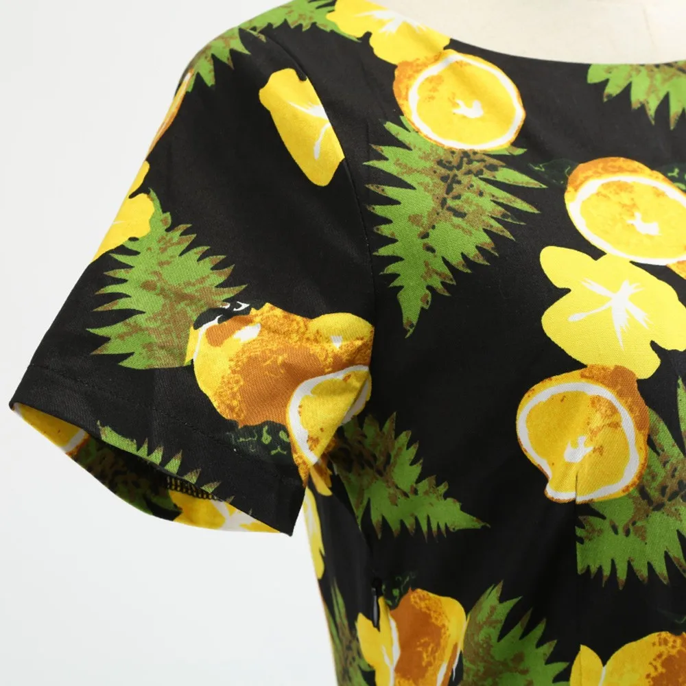 Женское платье с лимонным принтом, винтажное, лето-осень, пин-ап платье, Feminino Vestidos 50 s Rockbilly Robe размера плюс, платья S-5XL