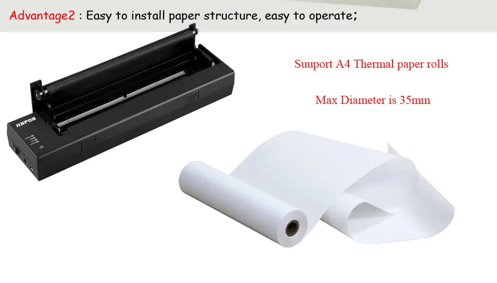 hot sale usb power A4 size portable thermal printer With Android app Low power consumption no ribbon and ink cartridges