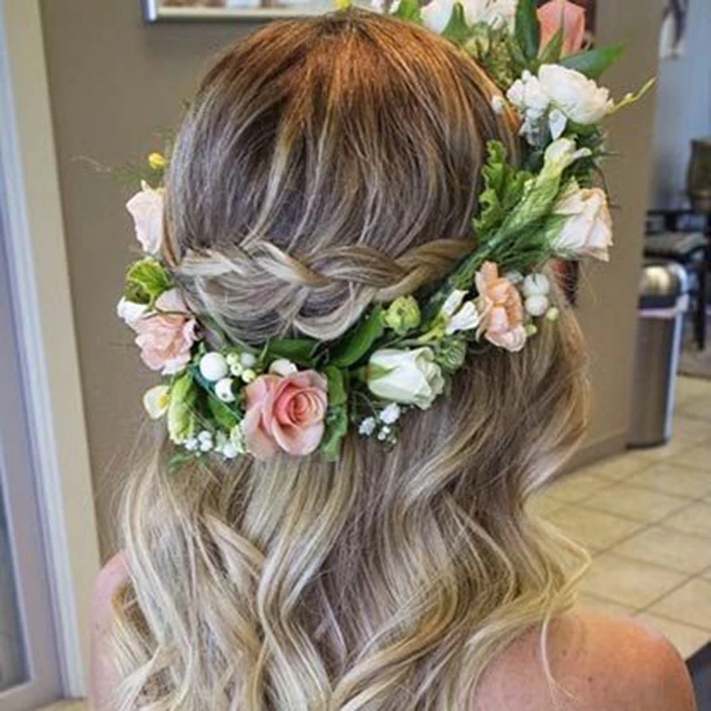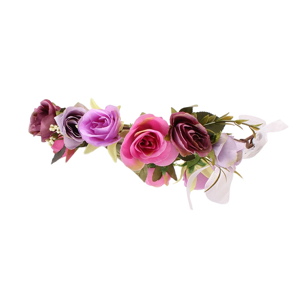 Boho Стиль Дети Девушки Цветочный ободок с розами волосы гирлянды