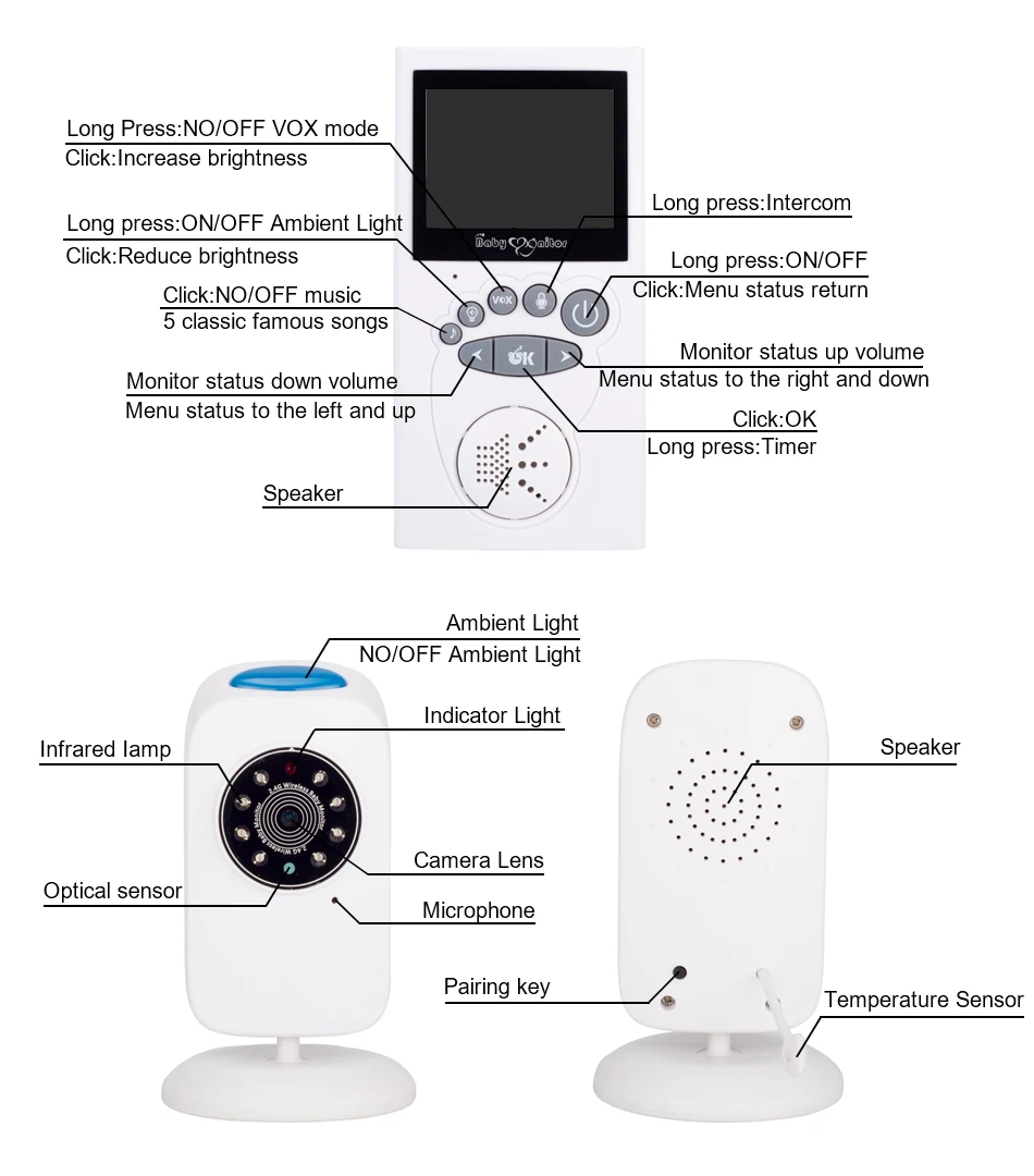 2,4 дюймовый беспроводной цветной видеоняня с высоким разрешением для наблюдения за температурой ночного видения