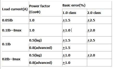 Под номинальным напряжением, номинальной частотой и COSΦ = 1, счетчик должен начать и продолжать регистрироваться при применении 0.2% дюйма (если используется КТ) или 0.4% Ib.