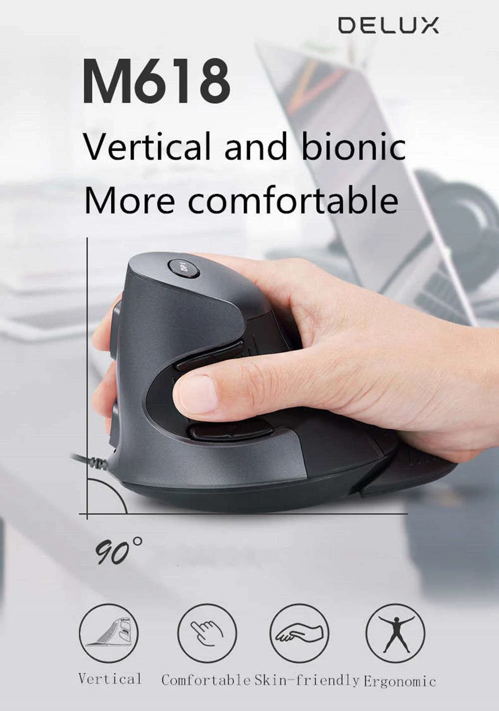 Delux Вертикальная мышь на основе улиточной бионики, в сочетании с эргономикой и вертикальным боковым держанием,